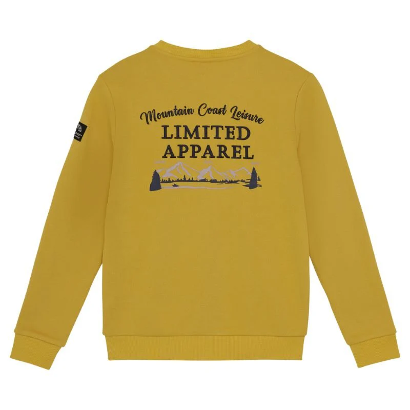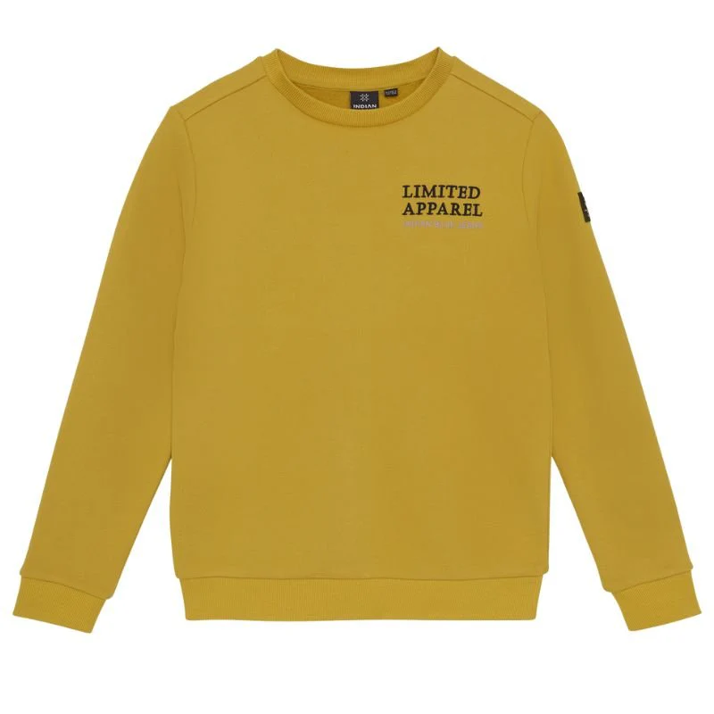 Okergele sweater Limited Apparel van Indian Blue Jeans voor jongens. Deze stijlvolle trui in de kleur Antique Bronze geeft elke outfit een moderne en stoere uitstraling. De warme okergele tint maakt dit sweatshirt een opvallend item dat je eenvoudig combineert met jeans of joggers.