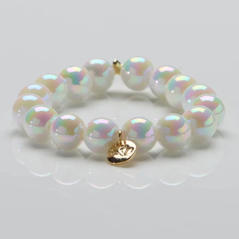 Opal White parelarmband 12mm van Ella in Love voor dames. Tijdloze elegantie in een subtiele glans! De opaalwitte parels stralen verfijning uit, terwijl het gouden vlindertje symbool staat voor lichtheid en transformatie. De luxe 3D-acrylparels vangen het licht op een zachte manier, perfect voor een chique, ingetogen look. Met het elastische bandje past het armbandje altijd perfect. Pure klasse, elke dag! De armband is verkrijgbaar in meerdere kleuren.
