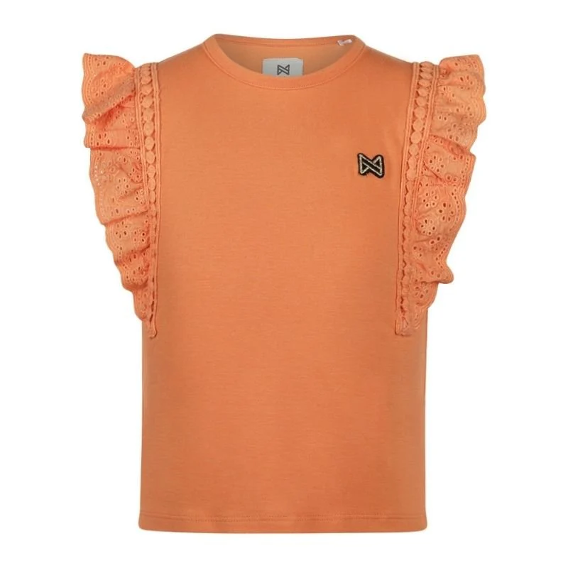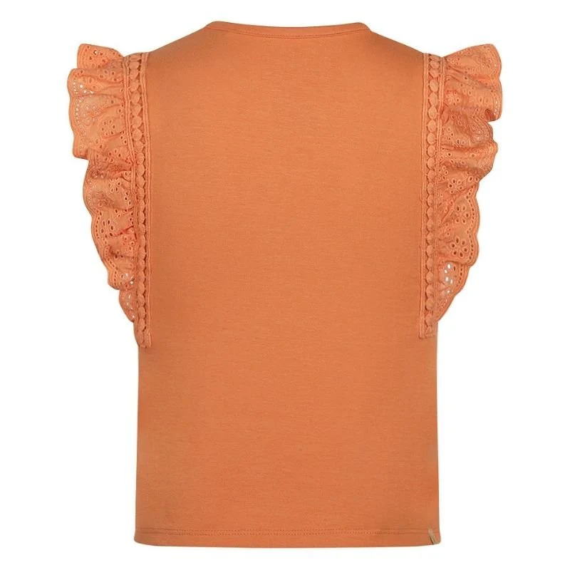 Oranje t-shirt P54940 van Koko Noko voor meisjes. Dit super comfortabele t-shirt is ideaal voor de warmere lente- en zomerdagen. Dankzij de zachte, ademende stof voelt het heerlijk licht aan en biedt het optimaal draagcomfort. Het stijlvolle ontwerp wordt versterkt door een schattig roesje op de mouwen. Perfect voor een casual, trendy look!