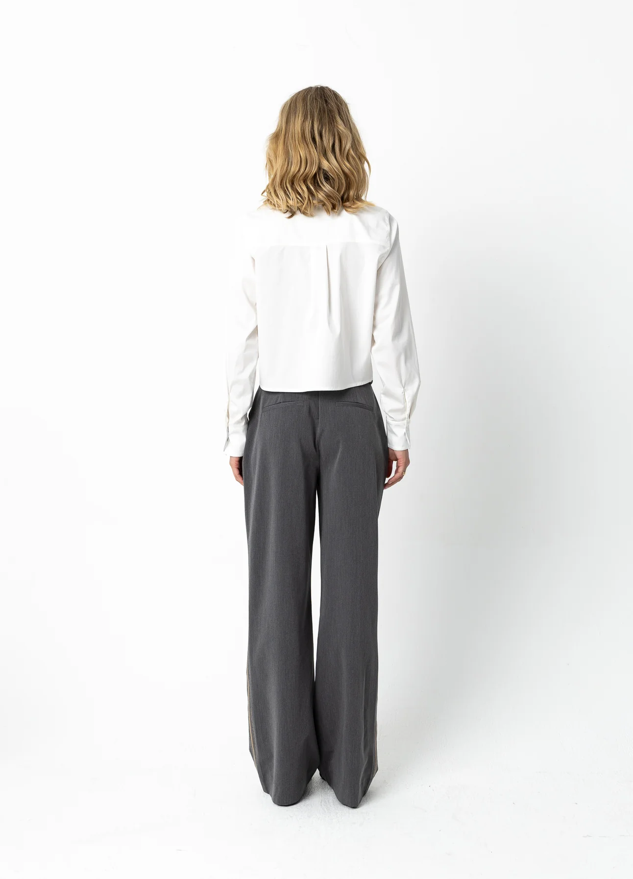 Het model is 173 cm lang en draagt maat S. Ze meet 84 cm rond de borst, 65 cm rond de taille en 96 cm rond de heupen.