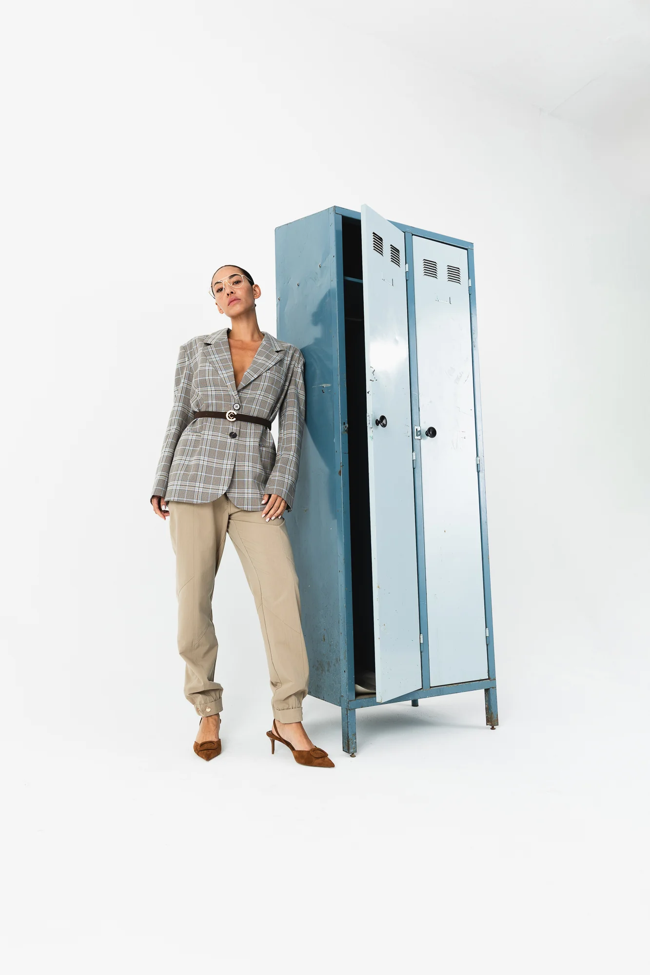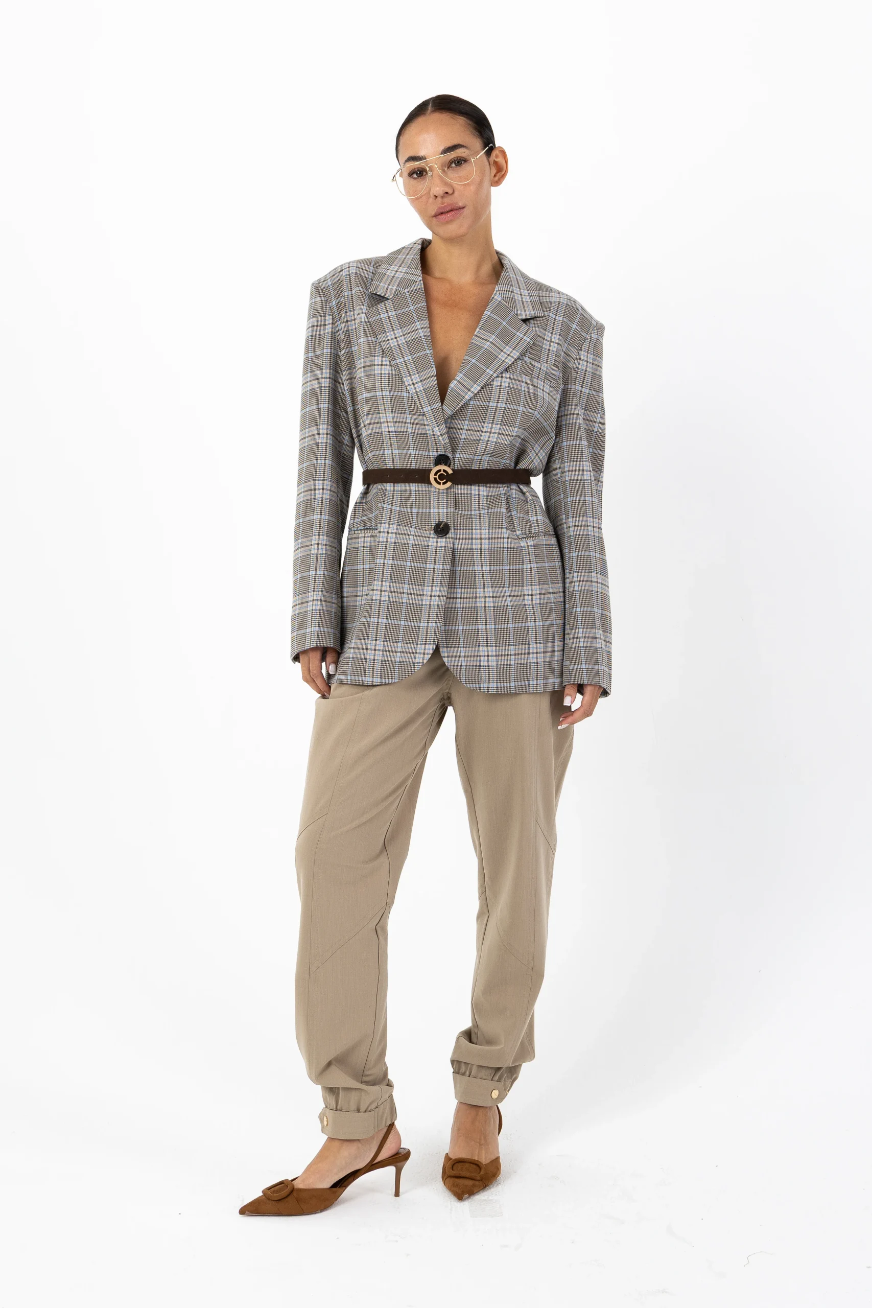 Het model is 173 cm lang en draagt maat S. Ze heeft een borstomvang van 84 cm, een tailleomvang van 65 cm en een heupomvang van 96 cm.