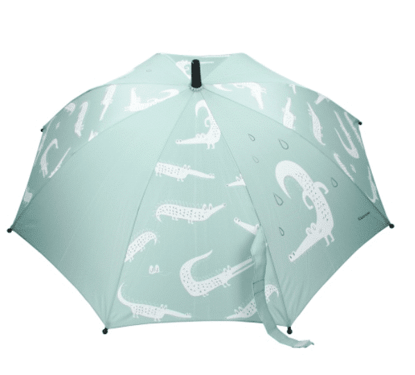 Hoezo is onder een paraplu door de regen lopen niet cool? Wel met deze stoere paraplu van Kidzroom. De groen paraplu staat vol met krokodillen, waarvan de een nog cooler is dan de ander. Doordat de paraplu licht in gewicht is, kan jouw stoere man hem prima tillen. De dopjes aan de baleinen zijn er uit voorzorg, zodat je zoontje of dochter zich niet bezeert.