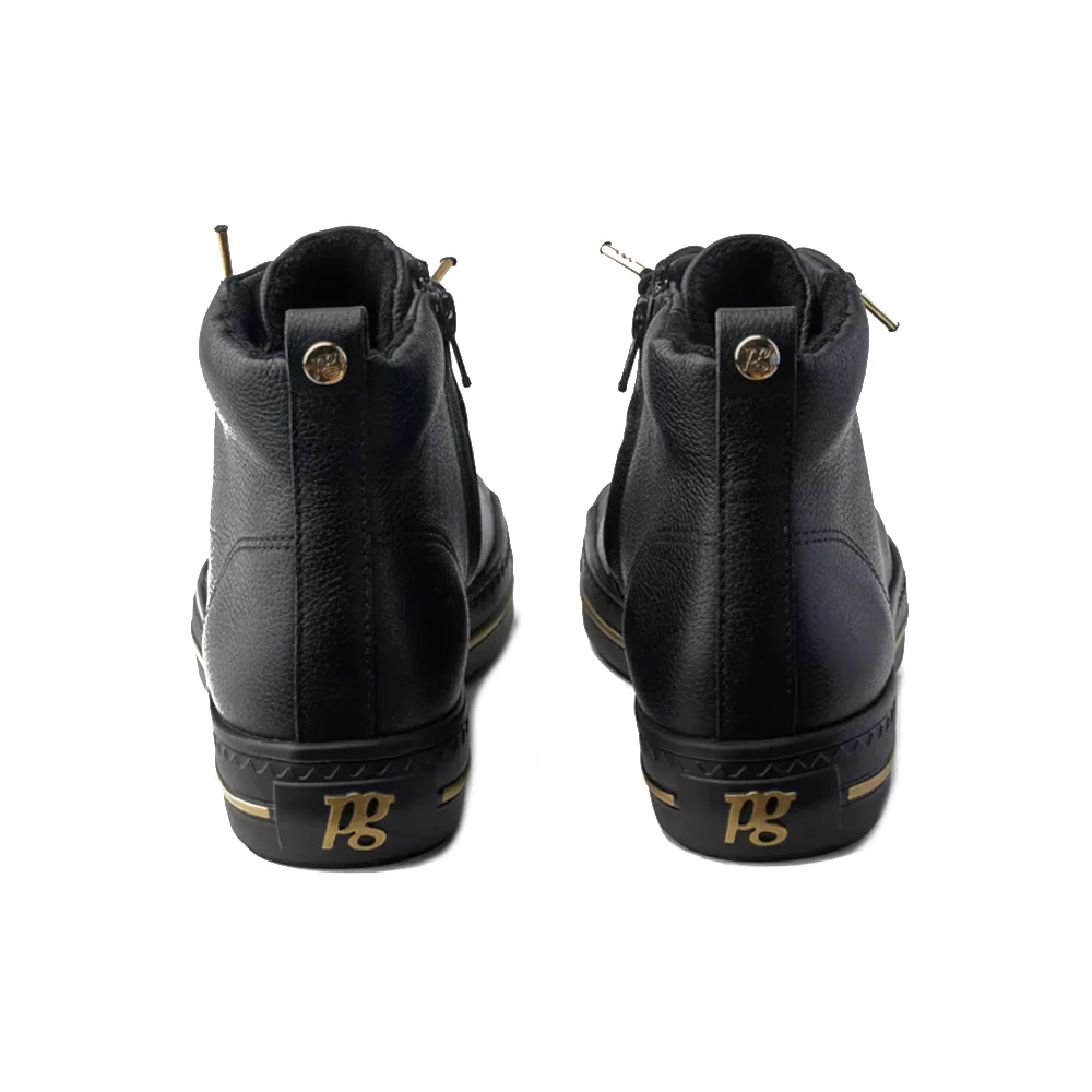 De Paul Green Veterschoenen 5283-024 Zwart zijn het toonbeeld van modern comfort en stijlvol design. Deze SUPER SOFT hightop-paren zijn ontworpen voor ongeëvenaard comfort, perfect voor ontspannen vrije tijdsmomenten. Ze zijn vervaardigd uit zacht glad leer in een elegant zwarte tint en zijn uitgerust met elastische veters en een verborgen rits aan de binnenkant voor optimaal gemak bij het aan- en uittrekken. De voering van zacht leer met badstof zorgt voor een behaaglijke pasvorm, terwijl het meesterschap van Paul Green zorgt voor een ongekende draagervaring. Deze schoenen bewijzen dat individualiteit en comfort hand in hand gaan.