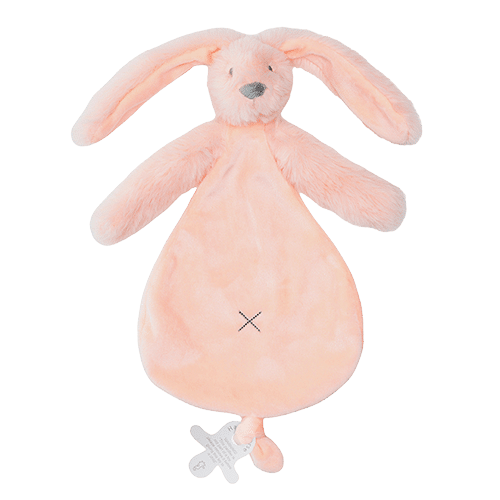 Dit schattige hippe peach knuffeldoekje van ons populairste konijn Rabbit Richie is niet alleen super zacht, maar houdt ook nog eens makkelijk vast aan zijn oren of armen. Hij biedt troost, geeft rust en aan het staartje kan je een speentje knopen.
