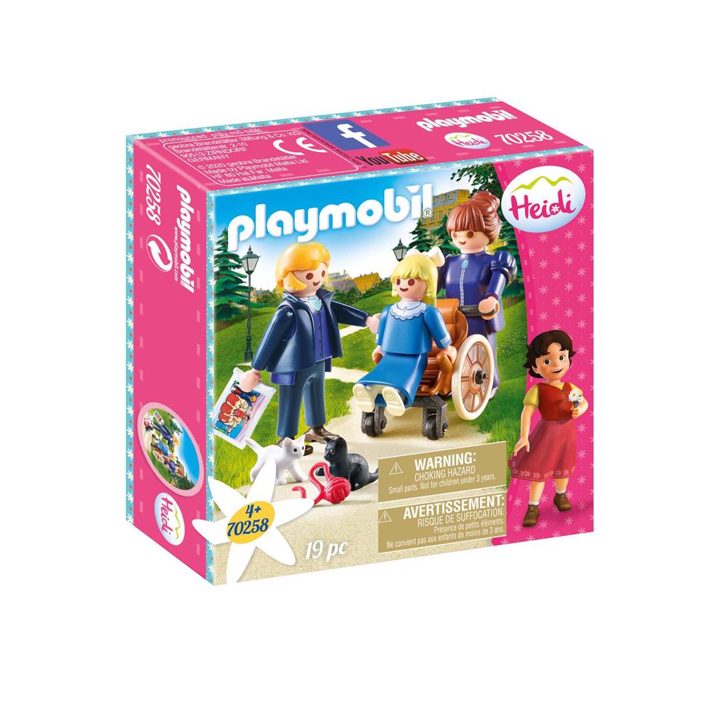Met Playmobil 70258 Klara Met Vader En Juf Rottenmeier kunnen kinderen zelf verhalen verzinnen. De rolstoel kan echt rijden. Bevat een rolstoel waar een kinderfiguur in past, 2 kattenfiguren, 2 volwassen PLAYMOBIL figuren, een PLAYMOBIL kinderfiguur en accessoires. Geschikt vanaf 4 jaar.