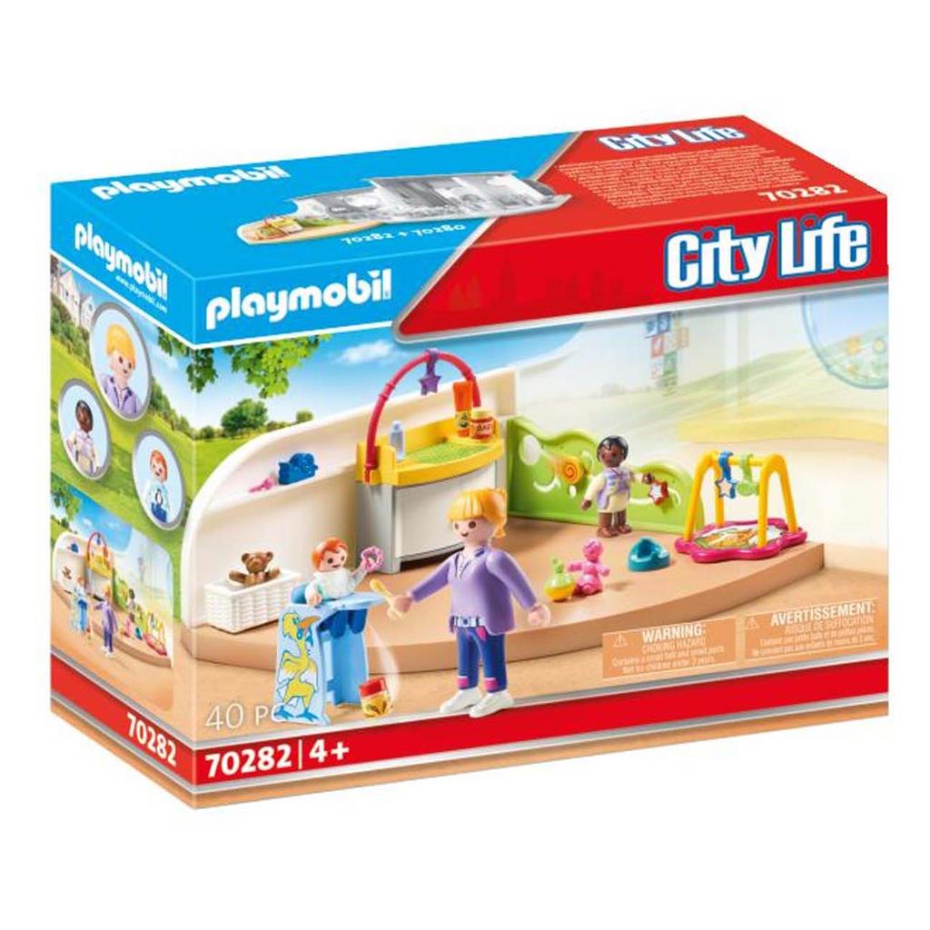 Met de Playmobil 70282 Peutergroep kunnen kinderen zelf verhalen verzinnen. De figuren in de motoriekwand zijn echt te verschuiven. Bevat een basis met kastdeel en motoriekwand, een commode, een kinderstoel, een babygym, een volwassen PLAYMOBIL figuur, twee PLAYMOBIL kinderfiguren en accessoires. Kan gecombineerd worden met het PLAYMOBIL kinderdagverblijf ‘Regenboog’. Geschikt vanaf 4 jaar.