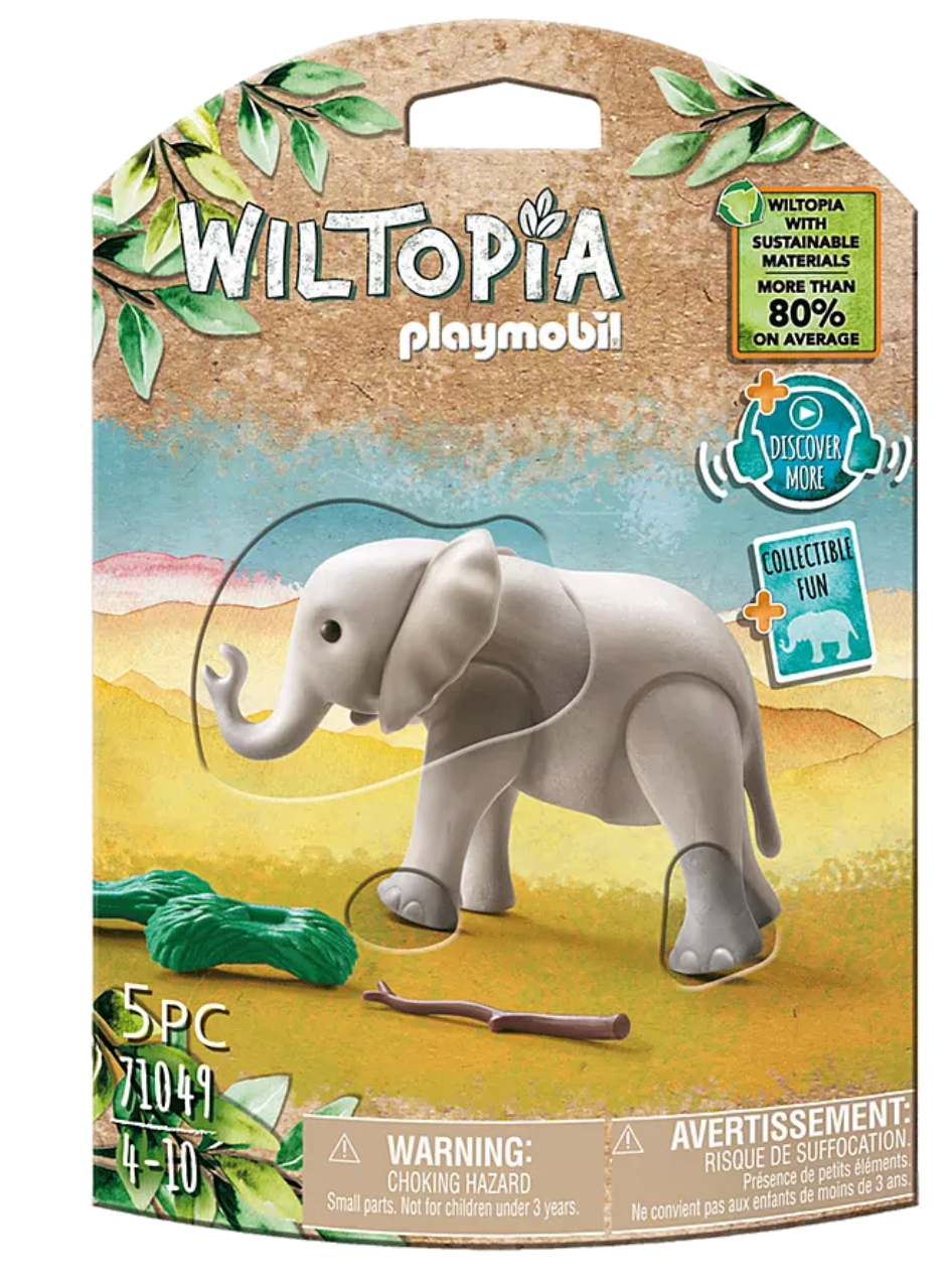 PLAYMOBIL jonge olifant inclusief accessoires, dierenkenniskaart om te verzamelen en spannende audiocontent. Met de Wiltopia-serie van PLAYMOBIL kunnen kinderen dieren en de natuur in hun eigen wereld ontdekken en zich onderdompelen in fantasierijke rollenspellen.