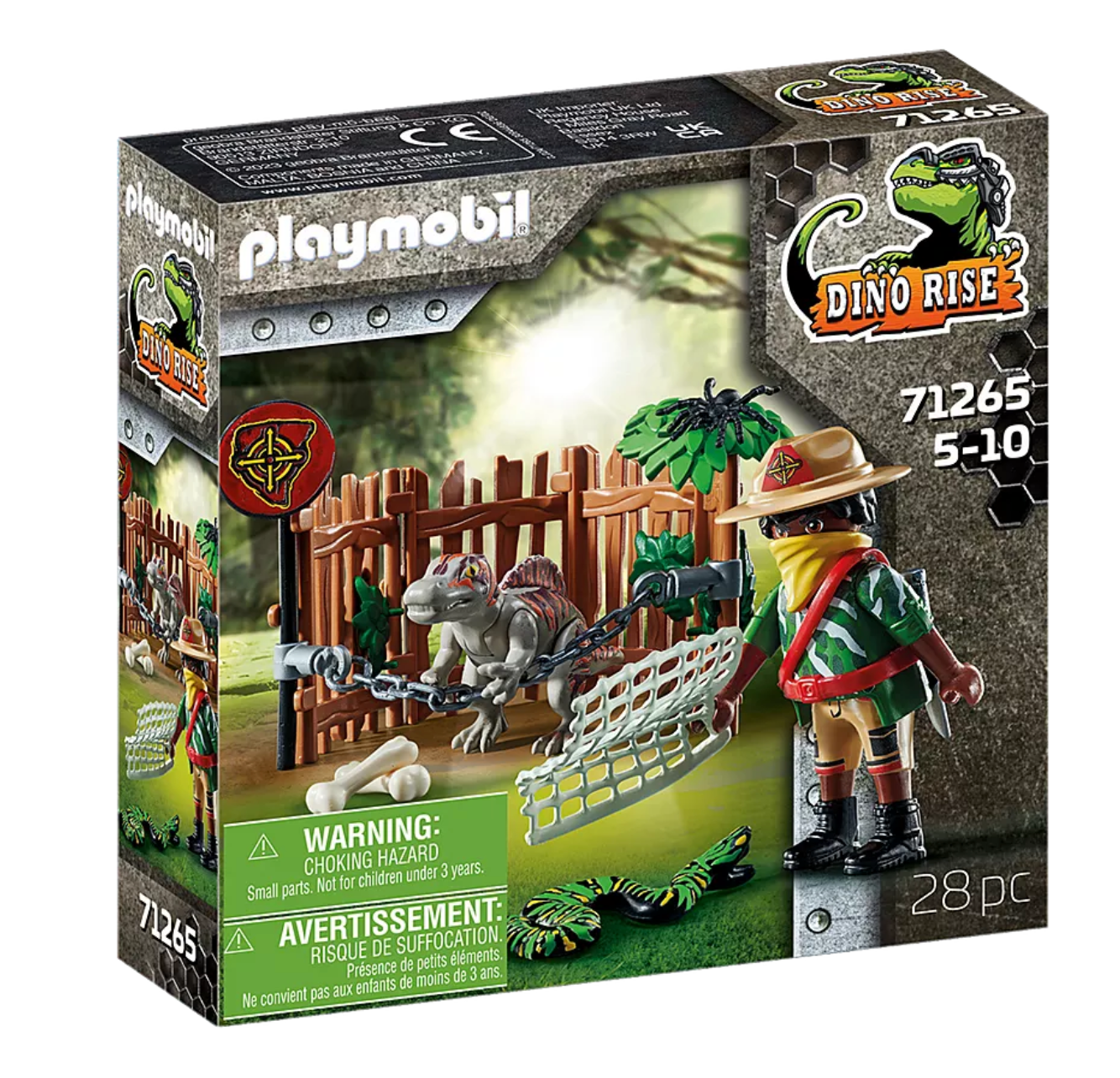 Welkom in de jungle! Het volgende avontuur van Team Dino Rise brengt hen naar de jungle. Kwaadaardige stropers hebben een baby-Spinosaurus gevangen en in een kooi opgesloten. Team Dino Rise kan natuurlijk niet werkeloos toekijken. Maar om de kleine dinosaurus te bevrijden, moeten ze de schurk te slim af zijn en de kooi openen. Met originele personages, indrukwekkende dinosaurussen en geavanceerde bepantsering biedt de speelwereld Dino Rise van PLAYMOBIL de perfecte combinatie van dinosaurusactie en plezier.