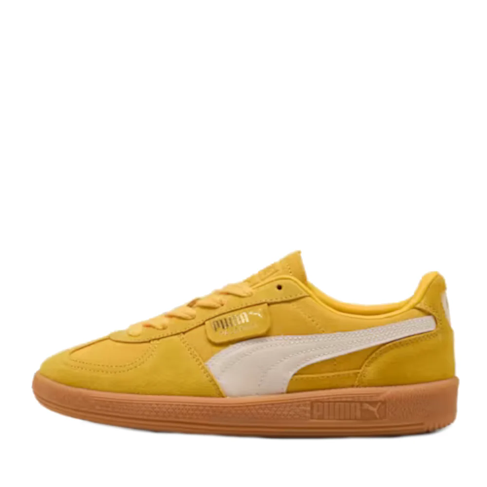 De Puma Palermo Sneakers zijn een eerbetoon aan de legendarische terrasschoenen uit de archieven van Puma. Met een soepele suède basis en een luxueuze leren formstrip, versterken ze niet alleen je dagelijkse look maar brengen ze ook een stukje sportgeschiedenis naar je voeten. De folieopdruk van het PUMA-merk op deze gele sneakers zorgt voor een opvallend accent dat je outfit compleet maakt. Perfect voor de liefhebber van sportieve elegantie met een moderne twist.