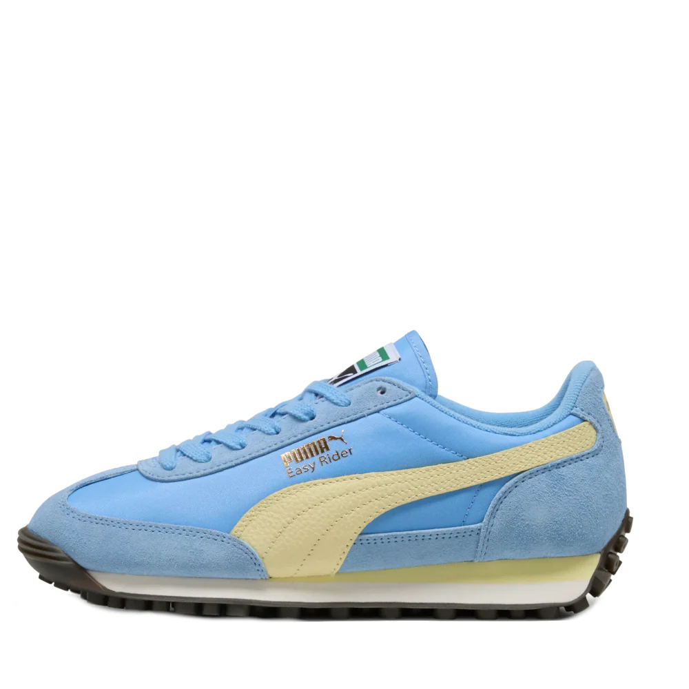 Maak kennis met de Puma Easy Rider Vintage Sneakers, een icoon dat zijn weg terugvindt naar de hedendaagse mode. Met zijn slanke profiel en vintage charme viert deze sneaker de overgang van hardlopen van de atletiekbaan naar de straat. De lichtblauwe kleur voegt een frisse touch toe aan elke outfit, terwijl de authentieke designelementen trouw blijven aan de originele Easy Rider. De perfecte mix van retro en modern, deze sneakers bieden comfort en stijl voor elke gelegenheid.