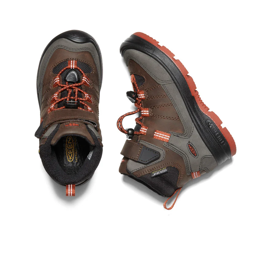 Deze stevige, waterdichte boots voor jonge kinderen zijn de perfecte keuze voor de wintermaanden en het samen ontdekken van nieuw terrein. Het bovenwerk is vervaardigd van waterbestendig nubuckleer, afkomstig van LWG-gecertificeerde looierij. De KEEN.WARM voering voorzien van het waterdichte, ademende KEEN.DRY membraan zorgt ervoor dat de voetjes bescherm zijn tegen kou en vocht van buitenaf, terwijl ze wel kunnen blijven ademen en zweet kan worden afgevoerd. Zelfs onder de koudste omstandigheden die we in Nederland kennen, bieden deze boots bescherming tegen kou. De gewatteerde schoentong en instap zorgen hierbij voor maximaal comfort. De hiel wordt extra ondersteund, terwijl de instap wordt vergemakkelijkt dankzij de bungee-koordsluiting en extra klittenbandsluiting. De TPU loopzool en de met lucht gevulde PU-tussenzool zorgen voor langdurige demping en maximale grip op verschillende soorten terrein.