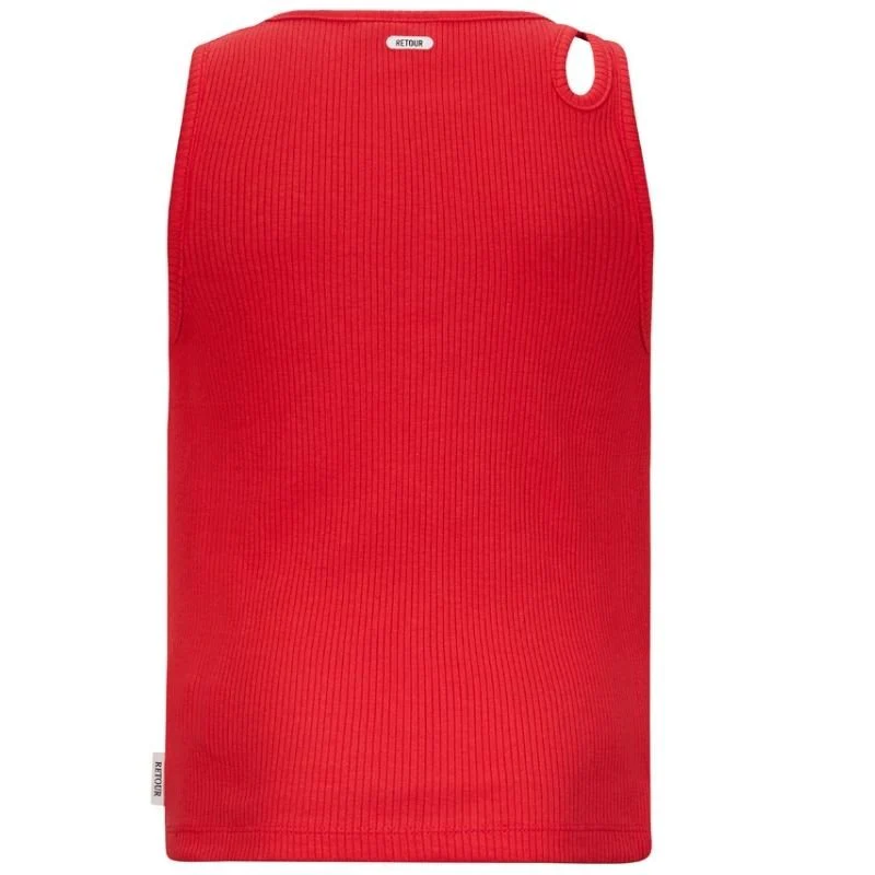 Rode singlet Gail van Retour Jeans voor meisjes. Deze rode singlet heeft een zachte ribstof en een subtiel open detail op de schouder voor een speelse twist. Gemaakt van 100% katoen, biedt het zowel comfort als stijl. De top heeft een rode kleur met een logootje op de borst. Verkrijgbaar in verschillende kleuren.