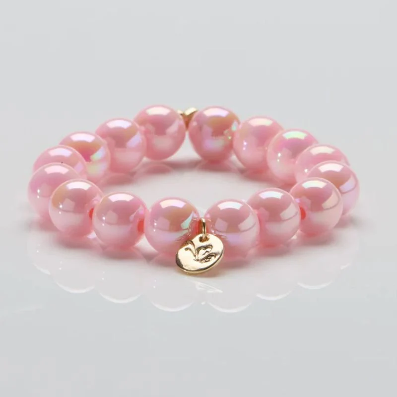 Rose Glow parelarmband 12mm van Ella in Love voor dames. Tijdloze elegantie in een subtiele glans! De lichtroze parels stralen verfijning uit, terwijl het gouden vlindertje symbool staat voor lichtheid en transformatie. De luxe 3D-acrylparels vangen het licht op een zachte manier, perfect voor een chique, ingetogen look. Met het elastische bandje past het armbandje altijd perfect. Pure klasse, elke dag! De armband is verkrijgbaar in meerdere kleuren.
