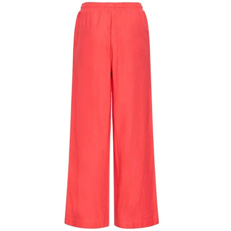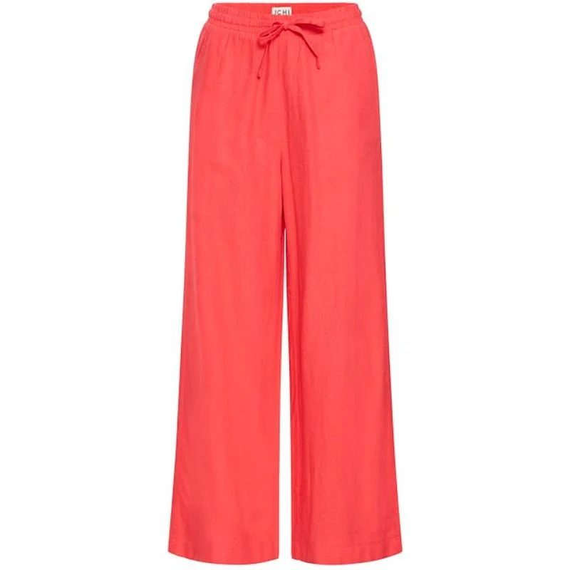 Roze broek Linno van ICHI voor dames. Deze broek is voorzien van een elastische tailleband en tunnelkoordsluiting. De zachte roze kleur en wijde pasvorm geven een zomerse, relaxte look. Gemaakt van een ademende mix van linnen en viscose, perfect voor warme dagen. Mooi te combineren met een lichte top of blouse.