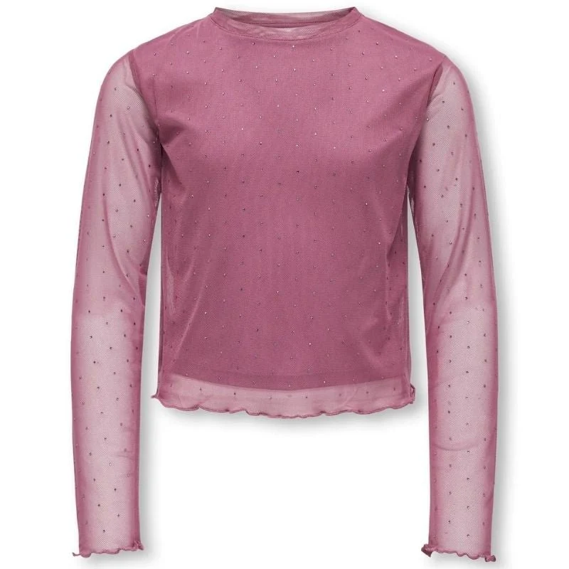 Roze longsleeve Jada Rhinestone van ONLY voor meiden. Deze stijlvolle top is perfect voor jonge fashionliefhebbers die houden van een vleugje glamour in hun outfit. De zachte roze kleur en glinsterende rhinestones geven de longsleeve een speelse en trendy uitstraling. De regular fit zorgt voor een comfortabele pasvorm, terwijl de ronde hals en slim fit mouwen het geheel een moderne, flatterende look geven. De meshdetails voegen een subtiel en modieus accent toe dat de top extra bijzonder maakt.