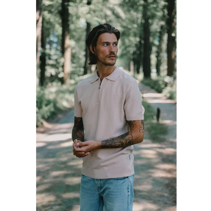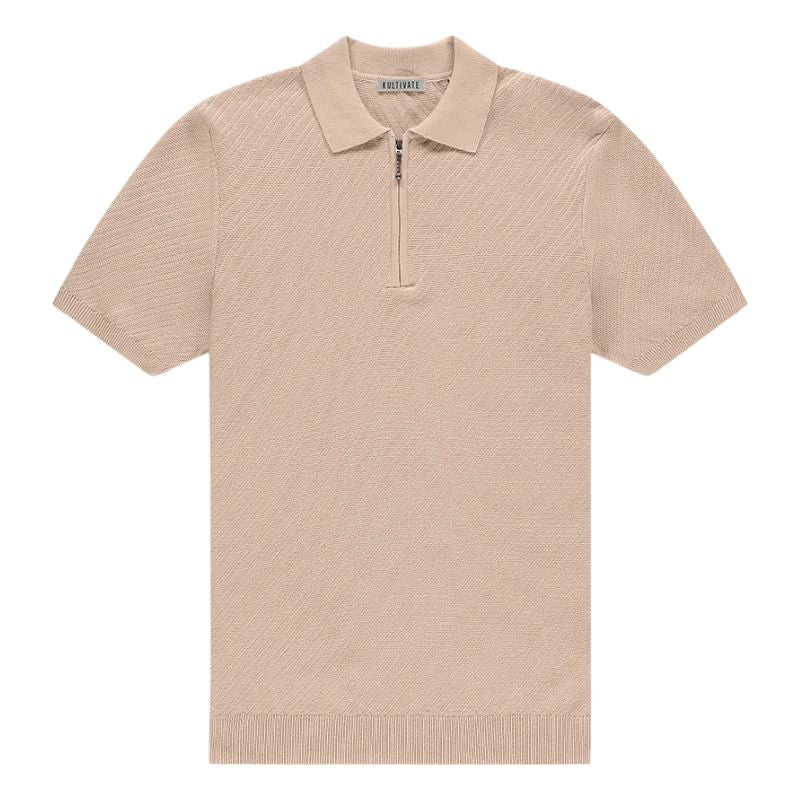 Roze polo Oblique Zip van Kultivate voor heren. Deze gebreide polo heeft een regular fit en een klassieke puntkraag. Tevens is de polo voorzien van een mooie ritssluiting en korte mouwen met een fijn geribde afwerking. Gemaakt van 100% conventioneel katoen voor een comfortabele en stijlvolle look. Ideaal voor zowel casual als nettere gelegenheden.