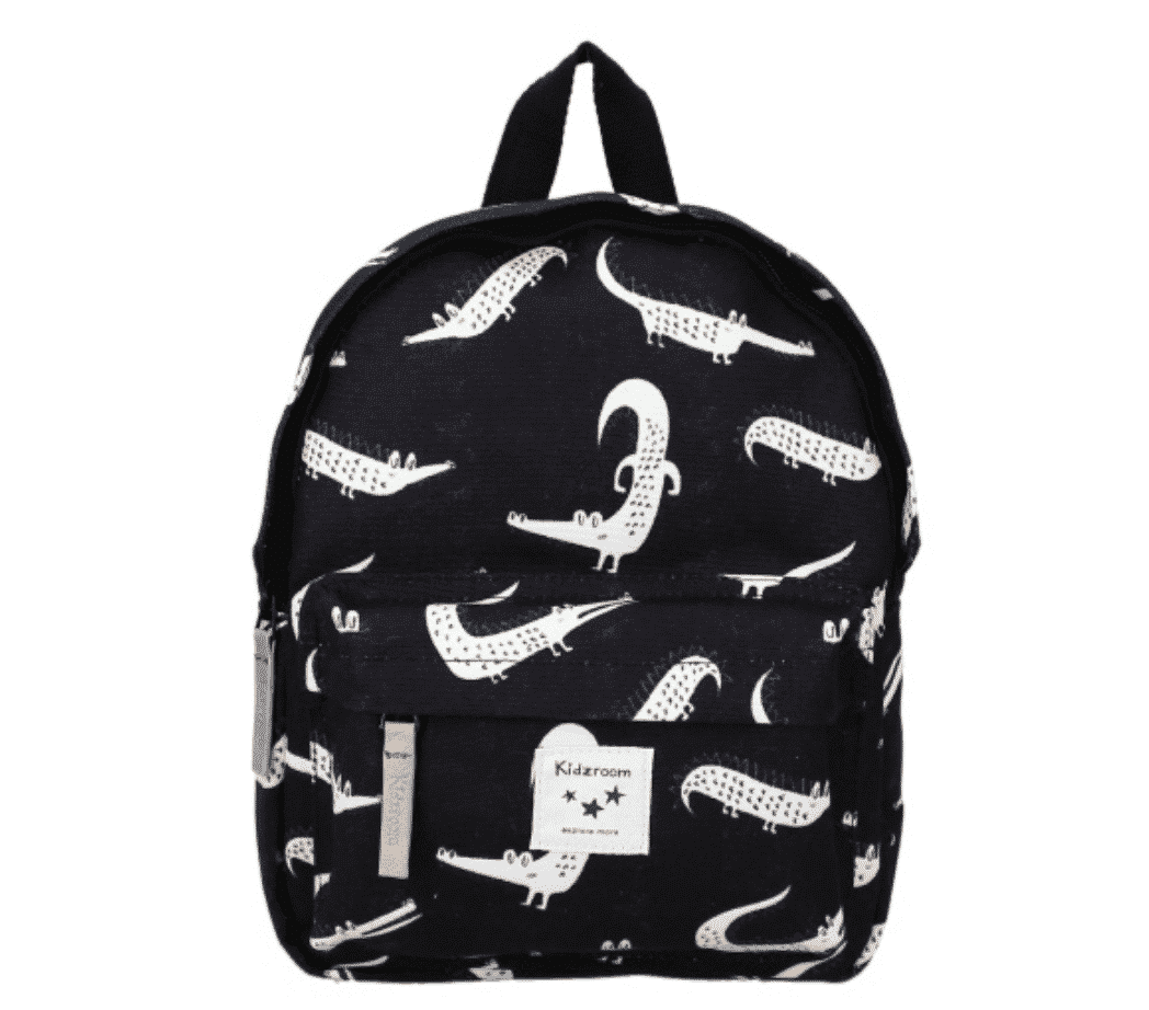 Als dit geen stoere rugtas is? Die wil je kindje vast overal mee naartoe nemen. Deze zwarte rugzak uit de Stories collectie is bedrukt me een leuke krokodillen print. De rugzak heeft een handig voorvak met een rits met ruimte voor de kleinere spulletjes die mee moeten. Het grote hoofdvak heeft een handige dubbele rits en biedt ruimte voor bijvoorbeeld een broodtrommel of extra setje kleding. Handig als je kindje de rugtas mee naar school neemt. De rugzak is te dragen aan de lus aan de bovenkant of op de rug met de verstelbare schouderbanden.