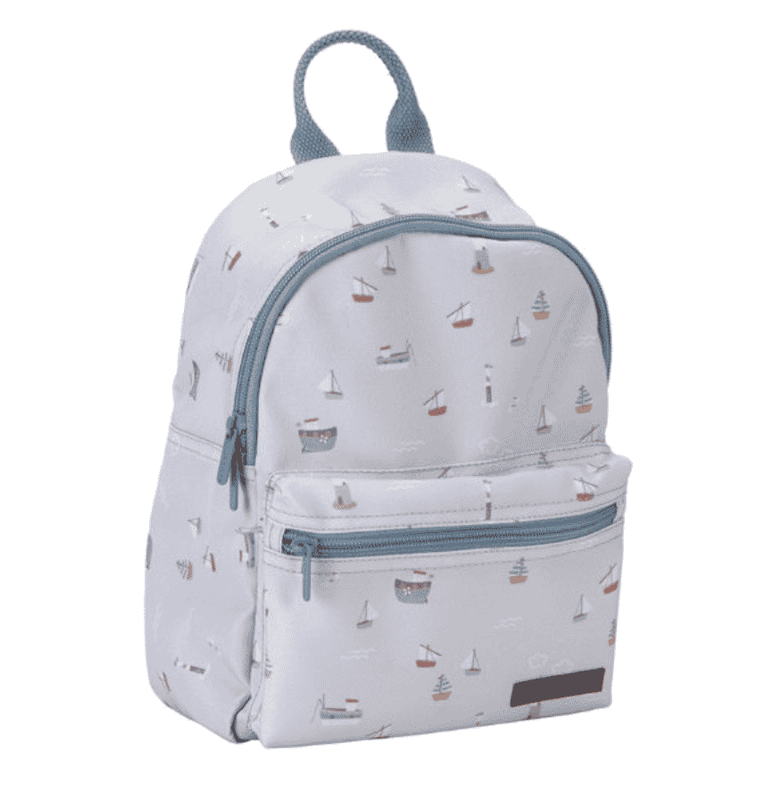 Deze schattige Sailors Bay rugzak is ideaal voor school of familiebezoek. Het milieuvriendelijke rugtasje is gemaakt van 10 gerecyclede petflessen. De schouderbanden zijn verstelbaar en kunnen worden ondersteund door de borstband vast te maken. Aan de binnenkant zitten twee elastische banden om drinkbekers rechtop te houden zodat ze niet lekken.