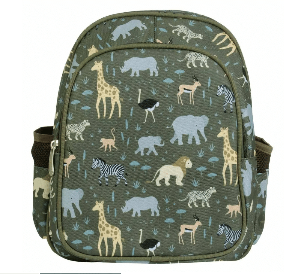 Lichtgewicht rugzak met savanne dieren print. De tas is voorzien van een geïsoleerd voorvak waarin snacks en drankjes koud (of warm) blijven. Het hoofdvak is groot genoeg voor al je schoolbenodigdheden. De tas heeft een extra compartiment en twee zijvakjes voor drinkflessen. De schouderbanden zijn gevoerd en voorzien van een borstriem. De achterkant is extra gevoerd met een ademende stof voor extra comfort.
