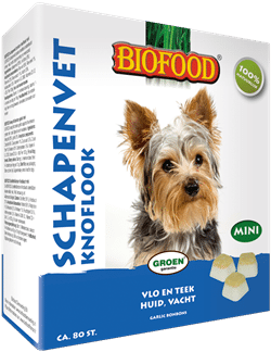 BIOFOOD schapenvet bonbons met knoflook en gezonde vitaminen zijn natuurlijk, effectief en smaakvol en ondersteunen de huid, vacht, vertering en weerstand. Het is tevens een uitzonderlijk gezonde en smaakvolle toevoeging op de dagelijkse voeding.