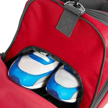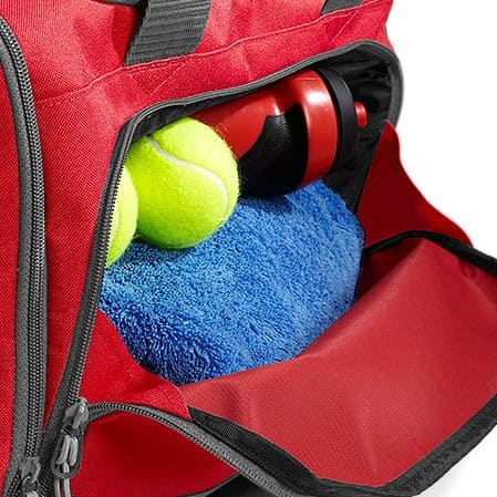 De deluxe Sporttas is gemaakt van duurzaam materiaal dat tegen een stootje kan. Het ontwerp biedt verrassend veel ruimte voor sportkleding, schoenen, een handdoek en een drinkfles.