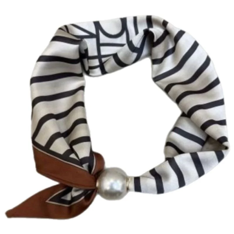 Stripe/brown parel sjaaltje Chloe van Tim & Simonsen voor dames. Dit elegante sjaaltje combineert een tijdloos streepdessin met warme bruine accenten voor een stijlvolle en moderne uitstraling. De parel als sluiting vormt een verfijnd detail en geeft het sjaaltje een luxe touch. Door het compacte formaat is het een subtiel accessoire dat elke outfit net dat beetje extra geeft.
