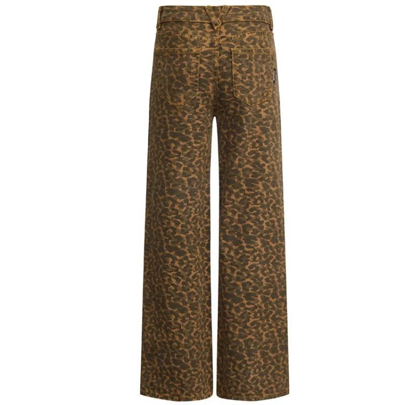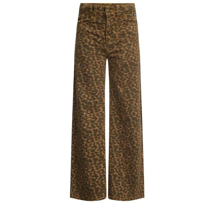 Tabacco wide fit panter jeans Peggy van Retour Jeans voor meiden. Deze opvallende broek uit de wintercollectie combineert stoer met trendy en is een echte blikvanger in elke garderobe. Het wide fit model met rechte pijpen zorgt voor een moderne uitstraling, terwijl de luipaardprint in tabacco tinten de jeans een speelse en eigenwijze look geeft. Perfect voor meiden die graag hun outfit laten opvallen.