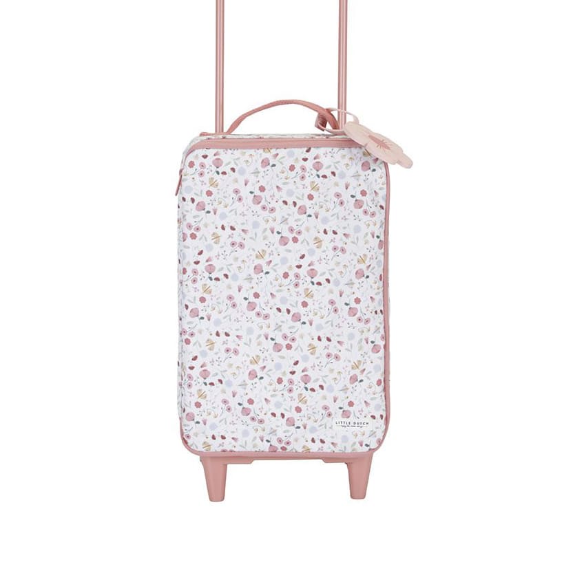 Ik ga op reis en ik neem me. Kindjes vinden het super leuk een eigen koffertje mee te nemen! Deze reiskoffer bevat de bekende print uit de Flowers & Butterflies collectie. Er zitten twee wieltjes en twee pootjes onder de reiskoffer. Met de rits maken ze gemakkelijk de reiskoffer open en dicht. Bovenop de reiskoffer vind je een draaglus en een uitschuifbaar handvat met een maximale hoogte van 80 cm. Een leuke toevoeging aan de reiskoffer is het bagagelabel gemaakt van rubber. Hier kan je de contactgegevens op schrijven.