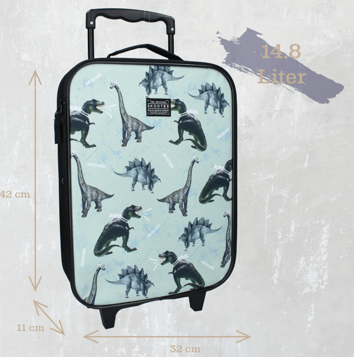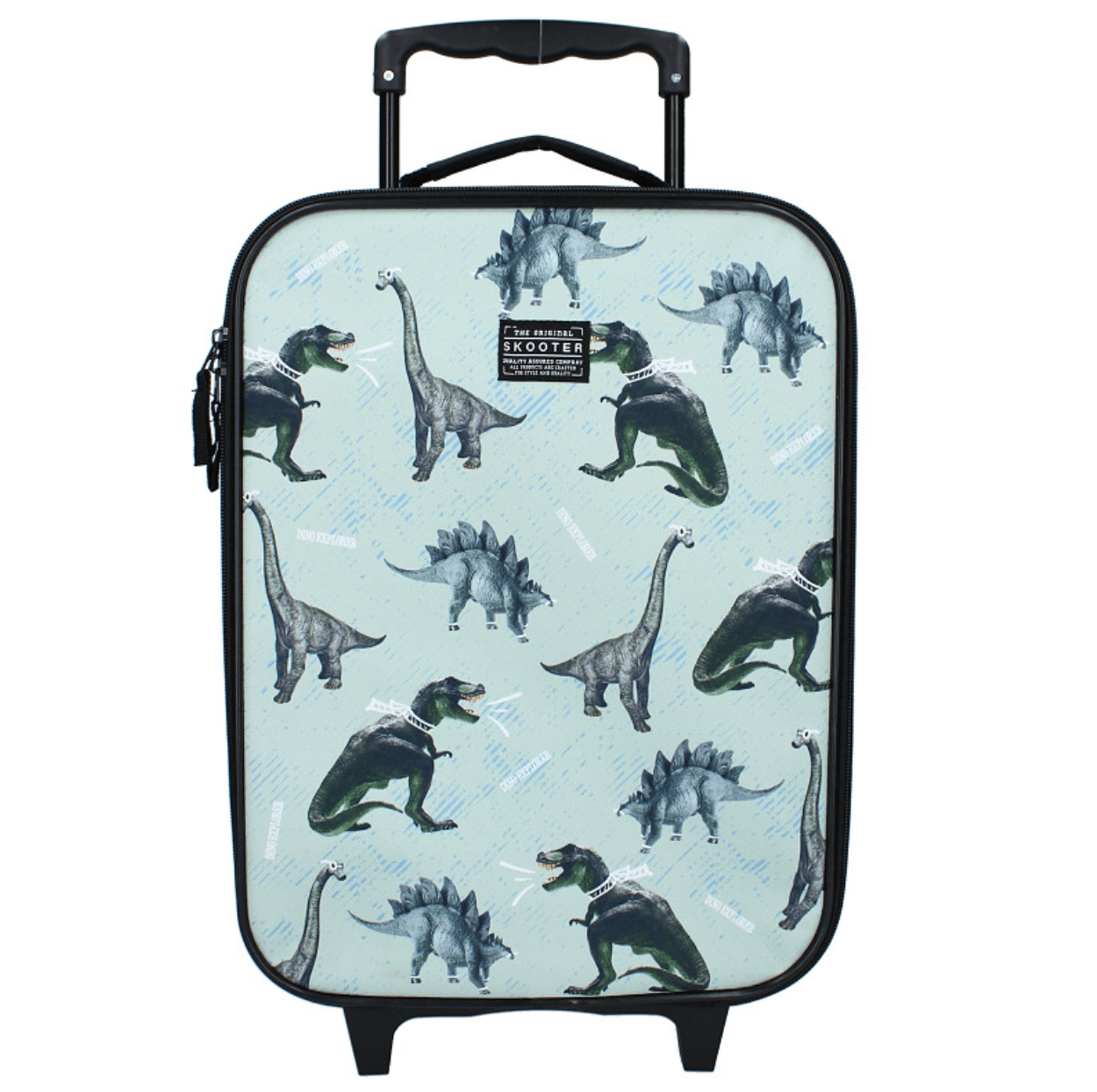 Deze trolley van Skooter uit de Boundless collectie is ideaal om mee op reis te nemen. Een kind kan nu zijn of haar eigen spulletjes meenemen! Ook is de trolley eenvoudig te herkennen door de gave print. Het grote hoofdvak biedt voldoende ruimte voor bijvoorbeeld zwemkleding, speelgoed en toiletspulletjes. De trolley heeft een geweldige dino print. Doormiddel van de dubbele ritssluiting kun je eenvoudig bij de nodige spullen. Het handvat is uittrekbaar en de twee wieltjes zorgen ervoor dat de trolley makkelijk voort te trekken is.