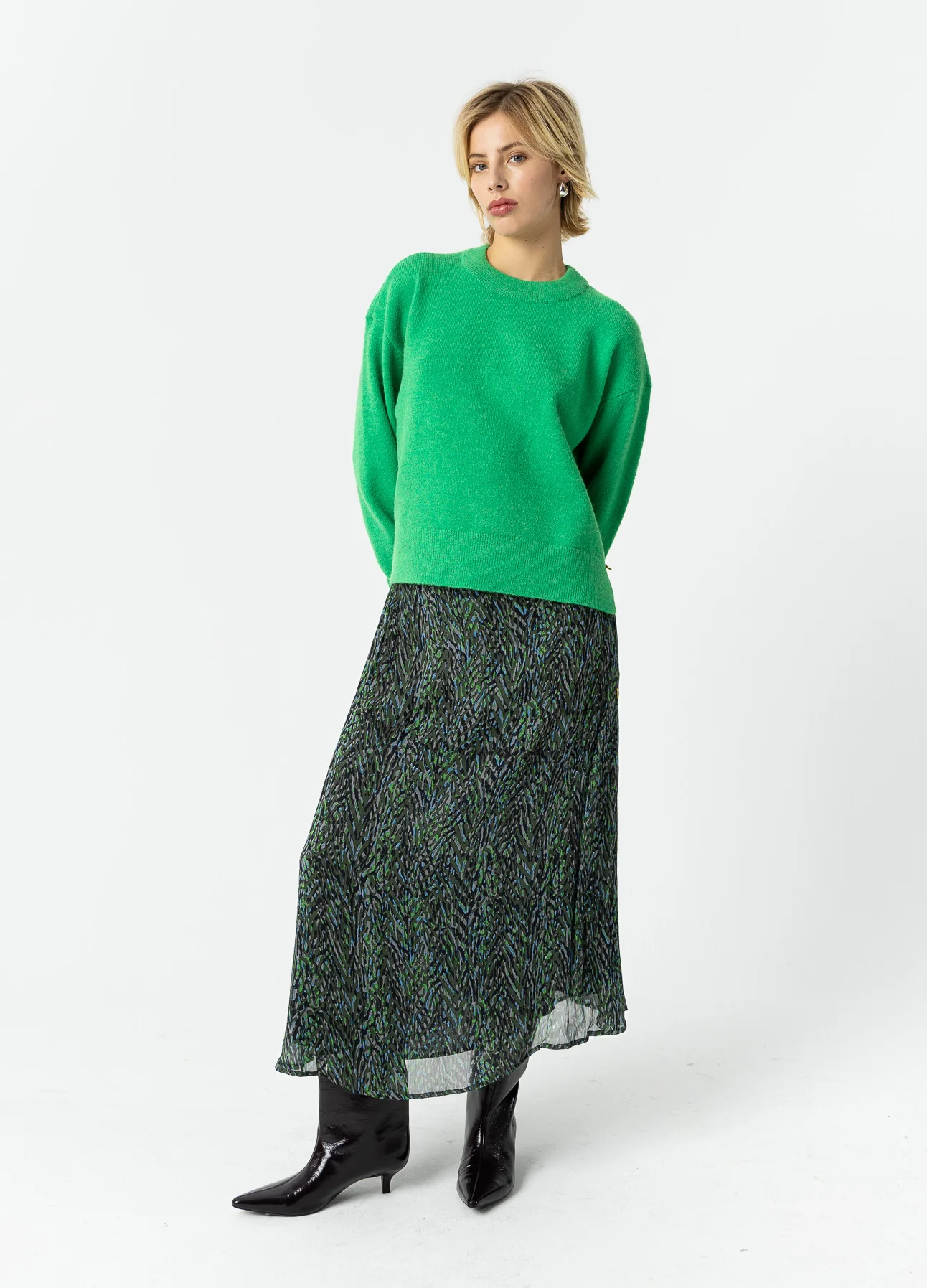 Het model is 173 cm lang en draagt maat S. Ze meet 84 cm rond de borst, 65 cm rond de taille en 96 cm rond de heupen.