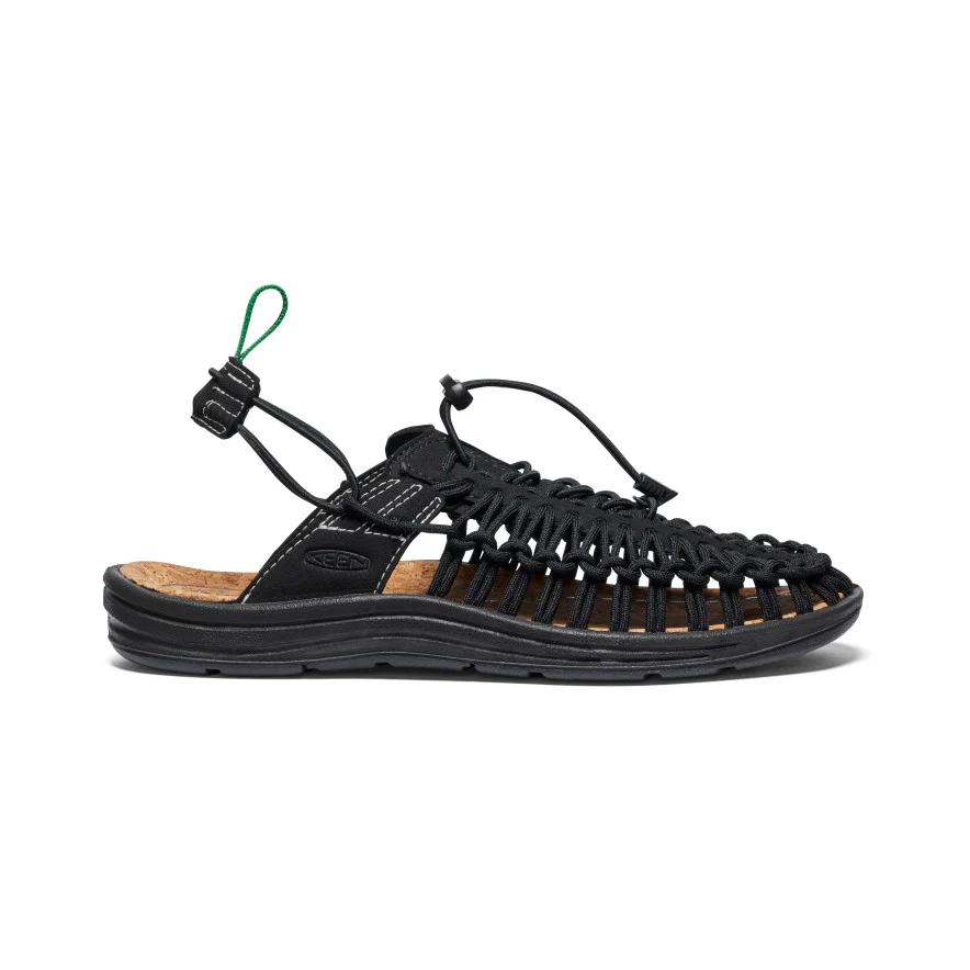 De KEEN Uneek II Convertible heeft een uniek ontwerp met veel praktische voordelen. Kies zelf of je de schoen gebruik als sandaal of slipper met dank aan de verstelbare hielband. Daar komt bij dat ze ongelofelijk comfortabel zitten dankzij het luchtige bovenwerk dat bestaat uit vrij bewegende koordverbindingen. In combinatie met de elastische koordsluiting past de sandaal zich hiermee perfect aan naar de vorm van jouw voet, zonder te gaan knellen. De koorden zijn gemaakt van gerecycled PET-plastic, evenals de koordsluiting. Je voeten worden ondersteund door het PU-voetbed met extra hielondersteuning voor langdurig comfort. De rubberen loopzool is voorzien van een profiel dat water snel afvoert voor uitstekende grip, ook op natte ondergronden. Kortom, een duurzame en multifunctionele schoen voor vrijetijd en onverwachte avonturen die op je pad komen.