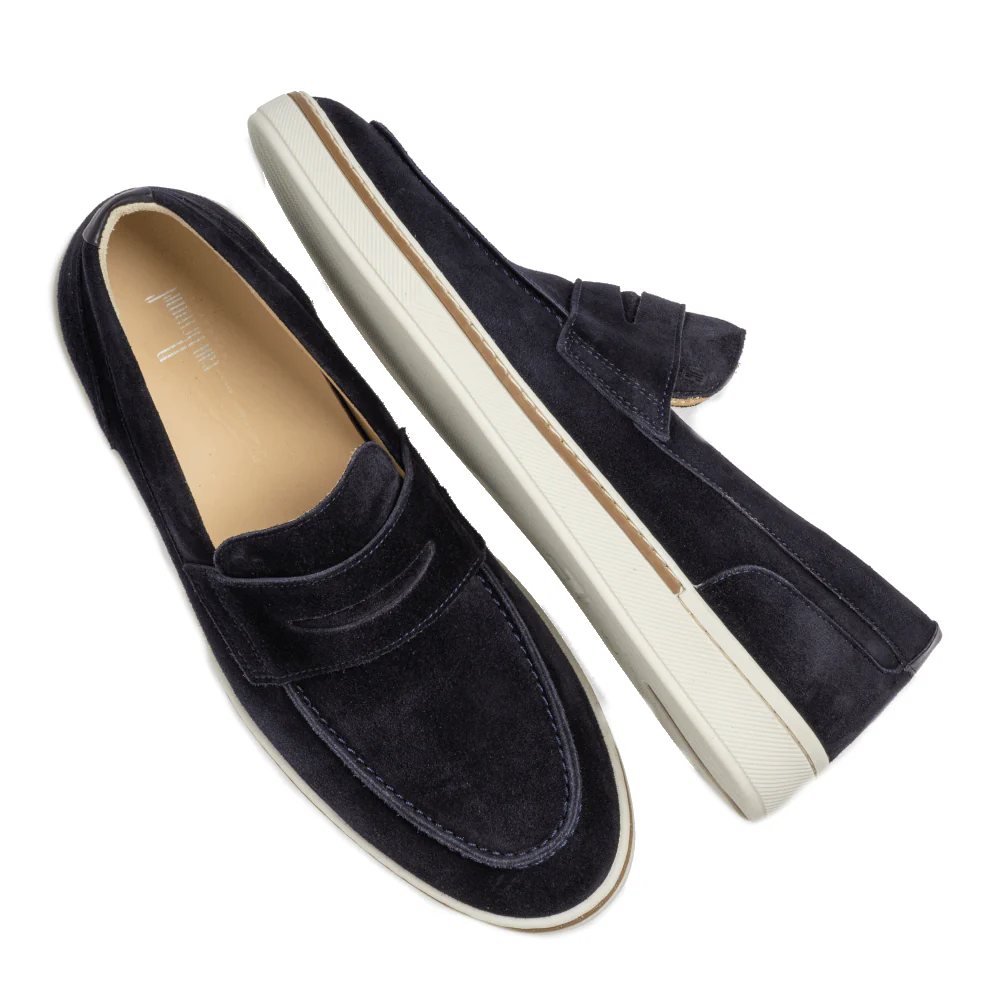- Vervaardigd uit eersteklas donkerblauw suède voor duurzaamheid en een elegante uitstraling.