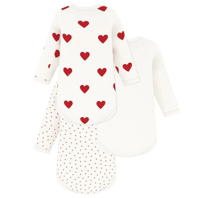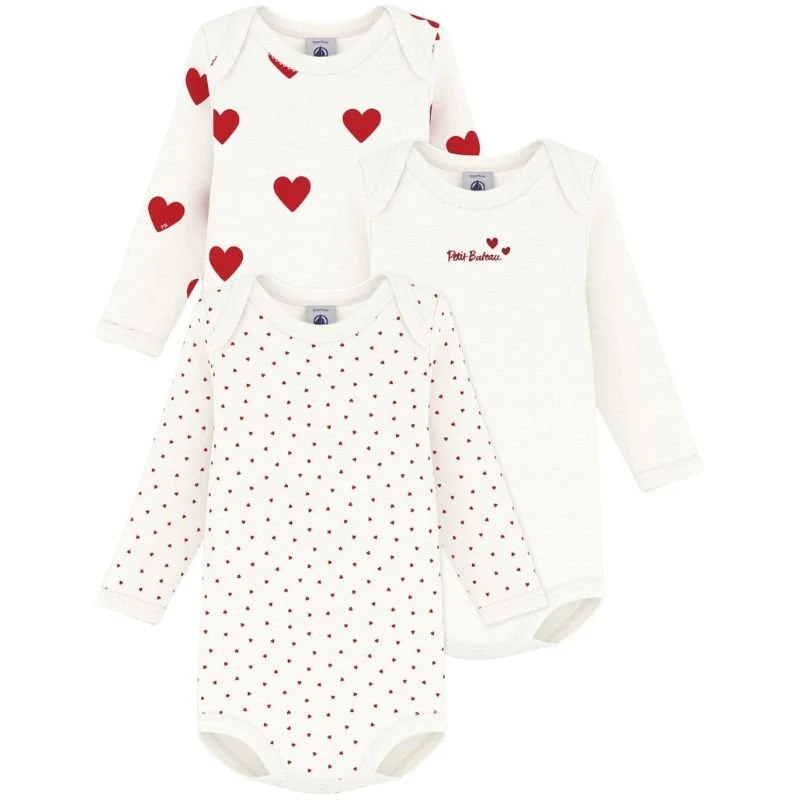Variant 1 3 BODIES US ML van Petit Bateau voor baby’s. Deze rompertjes zijn voorzien van een overslag en lange mouwen. De rompertjes hebben een witte kleur met drie verschillende hartjes prints. Gemaakt van 100% katoen. Deze rompertjes zijn te dragen vanaf 6 maanden tot 18 maanden. Zeer handig dankzij het haltermodel en de drukknoopsluiting tussen de beentjes.