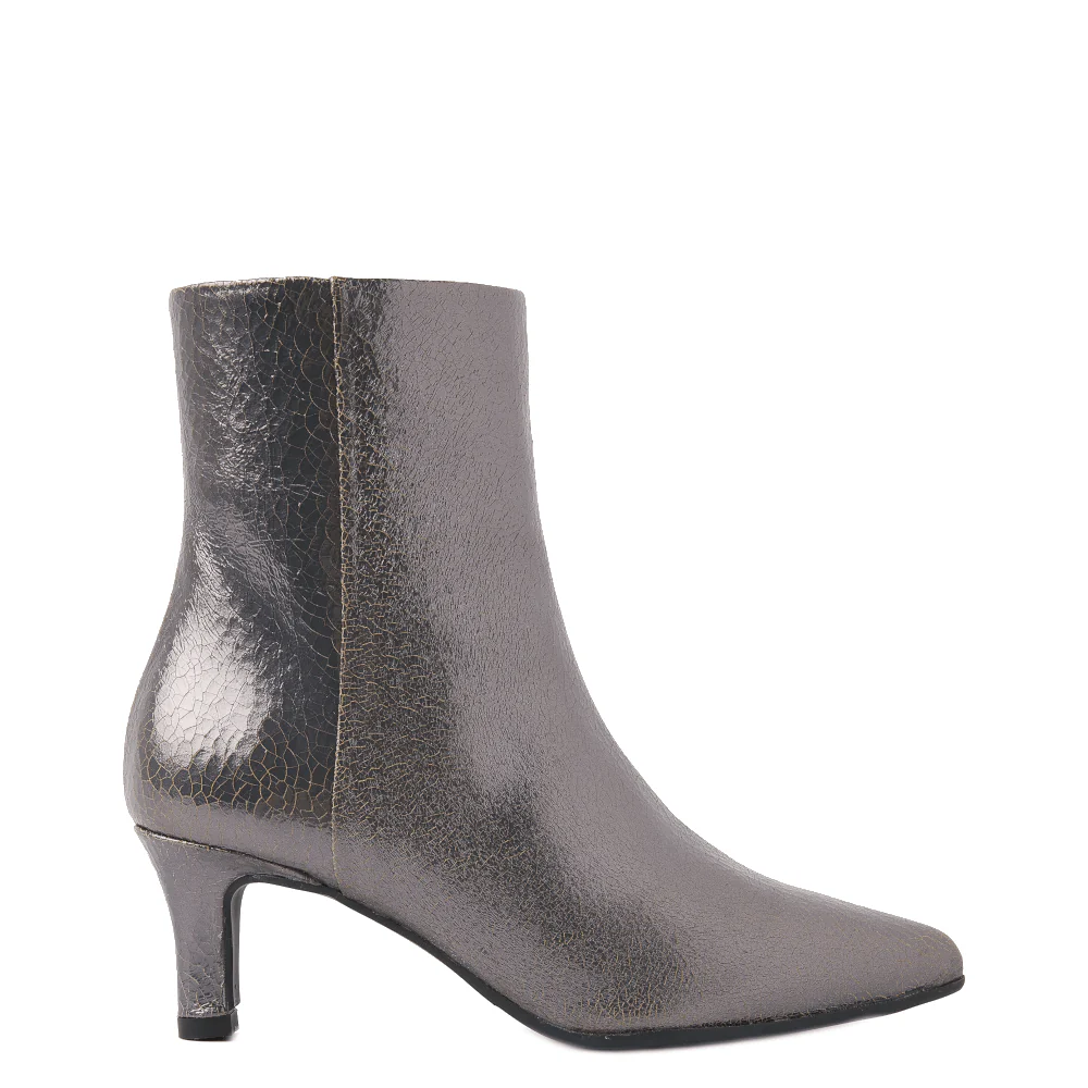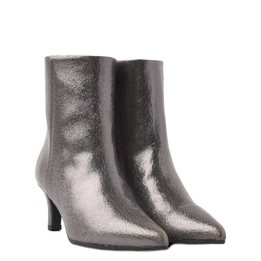 Wist je dat: Metallic materialen helemaal terug zijn in de mode? En dat ze je outfit net dat beetje extra kunnen geven, vooral als je kiest voor schoenen met een metallic afwerking zoals de Via Vai Noah Lou enkellaarsjes in grijs.