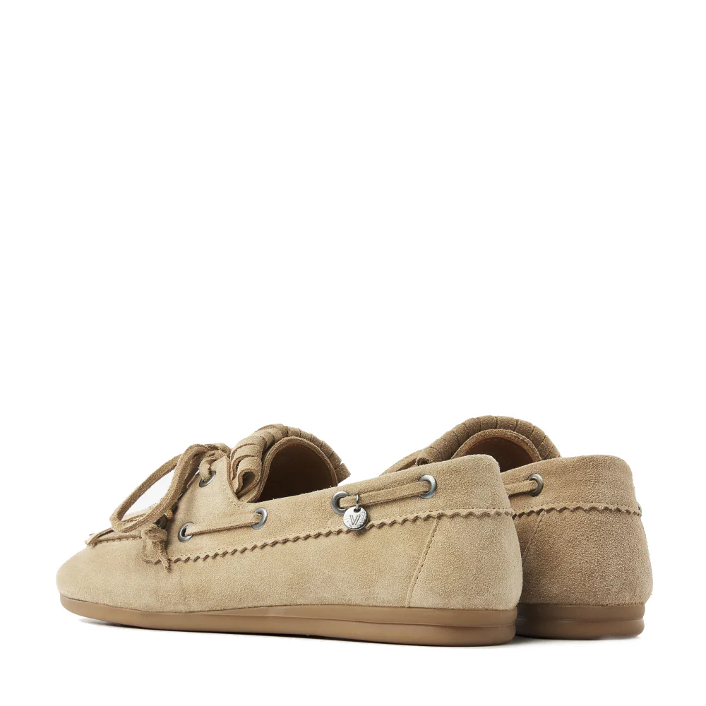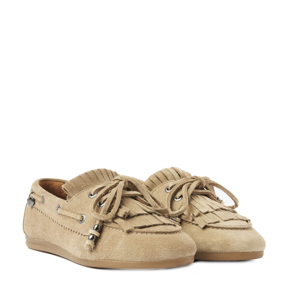 June Loua laat zien hoe een instapper met een klassieke mocassin-vorm en afgeronde neus moeiteloos stijl combineert met dagelijks comfort. De schoen heeft een flexibele zool van lichtbruin rubber die meebeweegt met elke stap, zodat lange dagen aanvoelen als een plezier. Het beige leer geeft een tijdloze uitstraling die gemakkelijk te combineren is met jeans, rokken en jurken. Franje op de wreef en kraaltjes geven een speels accent, terwijl veteraccenten rondom de zijkant zorgen voor een subtiele bootschoenlook. De combinatie van deze details creëert een nonchalante, maar verzorgde stijl die zowel casual als netter gedragen kan worden. Donelli presenteert hiermee een model dat betrouwbaar zit, zacht aanvoelt en er elke dag fris uitziet.