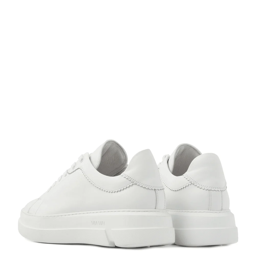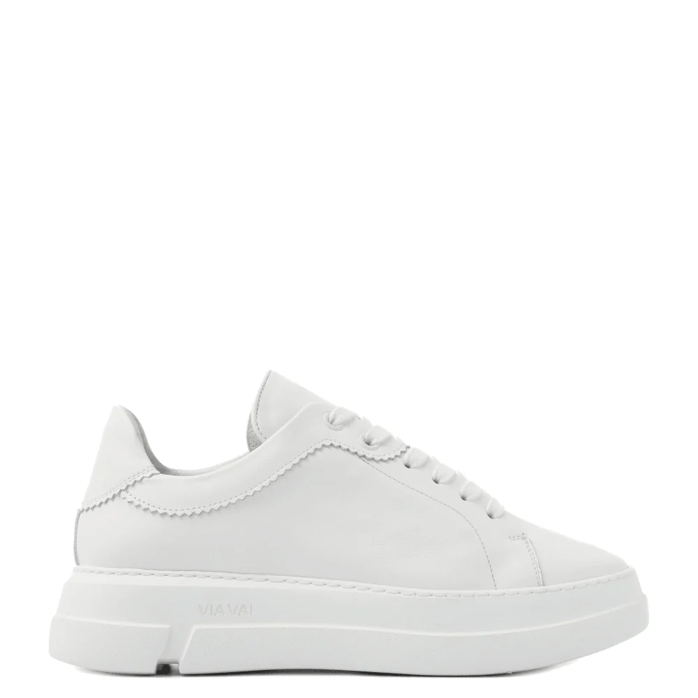 De Via Vai 58051-02-001 in het wit zijn de sneakers die jouw voorjaarsgarderobe compleet maken. Deze veelzijdige sneakers passen bij elke outfit en gelegenheid. Het design combineert comfort met stijl, waarbij de platformzool van 3,5 cm niet alleen wat extra lengte biedt, maar ook zorgt voor een comfortabele pasvorm. Het lichtgewicht materiaal en het unieke gekartelde randje geven deze schoenen een speciale touch, waardoor ze zich onderscheiden van de standaard witte sneakers.