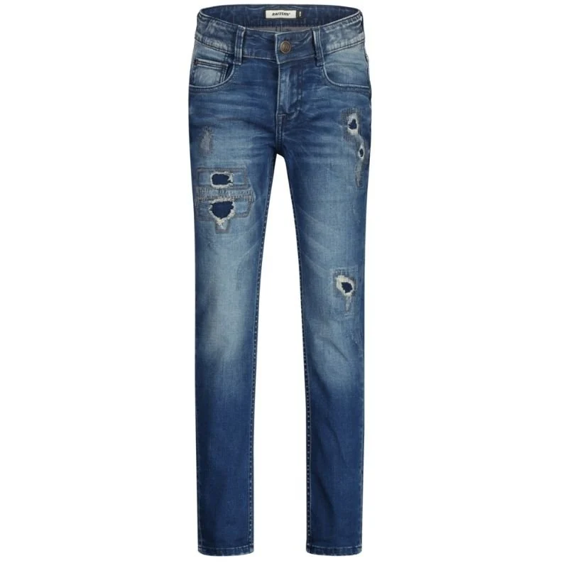 Vintage Blue jeans Tokio Crafted van Raizzed voor jongens. Deze broek is voorzien van een knoop- met ritssluiting en voor- en achterzakken. De broek heeft een blauwe kleur en damaged details. Gemaakt van 99% katoen en 1% elastan. De broek sluit mooi aan en is makkelijk te combineren met een item uit de collectie van Raizzed. In een skinny fit.