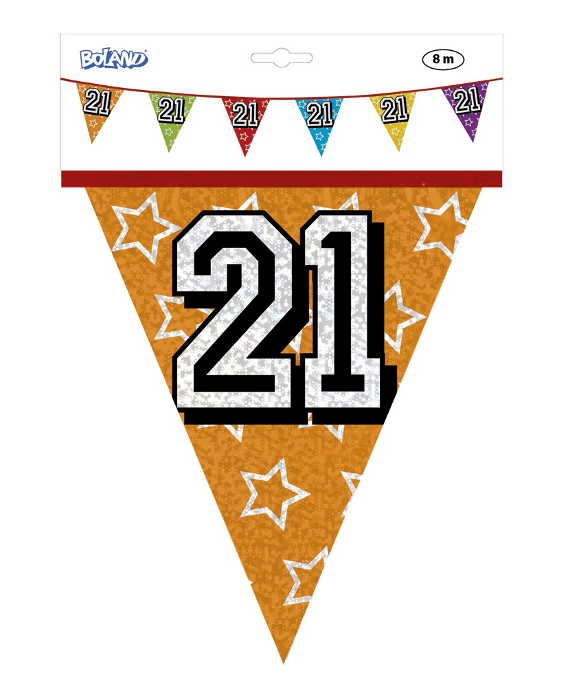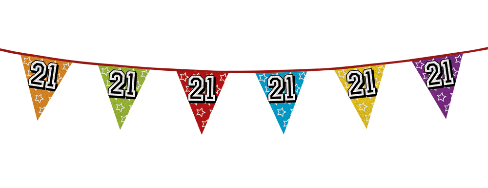 Met deze vrolijk gekleurde exemplaren maak je vanaf de eerste blik duidelijk wie het feestvarken is, want op elk vlaggetje staat het getal 21.