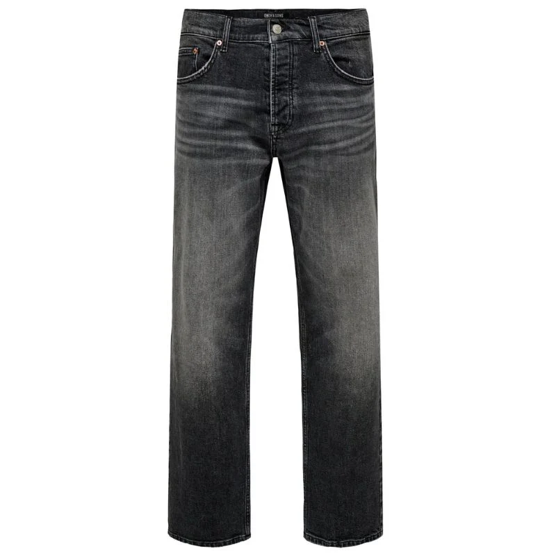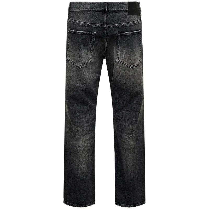 Washed Black jeans Edge van ONLY & Sons voor heren. Deze straight fit jeans heeft een mid-rise taille en een subtiele stonewash look. Gemaakt van 100% katoen, biedt hij ademend vermogen en duurzaamheid. Voorzien van een rits- en knoopsluiting, riemlussen en vijf zakken. Ideaal voor dagelijks gebruik en eenvoudig te combineren met diverse outfits