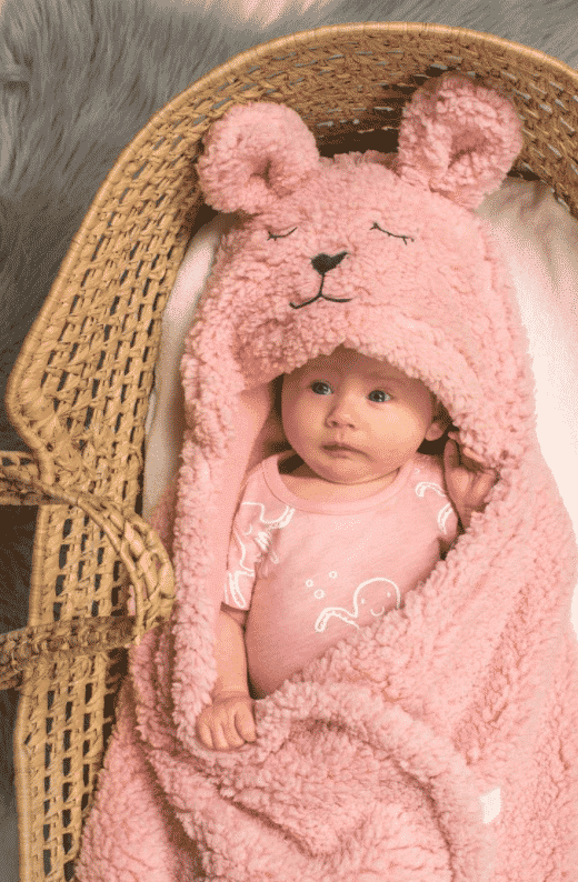 Wikkeldeken met gegarandeerd mega hoge cutenessfactor. De stof is van fluffly vachtlook aan de buitenkant en heerlijk comfortabel zacht aan de binnenkant.