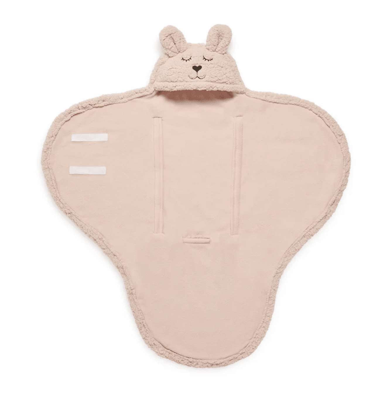 Wrap jouw baby heerlijk in deze extra zachte wikkeldeken. Zo krijgt jouw kleintje het onderweg niet koud. Je kunt hem gebruiken als deken in de box of bij het knuffelen op de bank. In de wikkeldeken met konijnengezichtje zitten ook extra openingen die hem geschikt maken voor een autostoeltje. Met klittenband kun je deze wikkeldeken gemakkelijk bevestigen. Neem deze wikkeldeken dus overal mee naartoe!