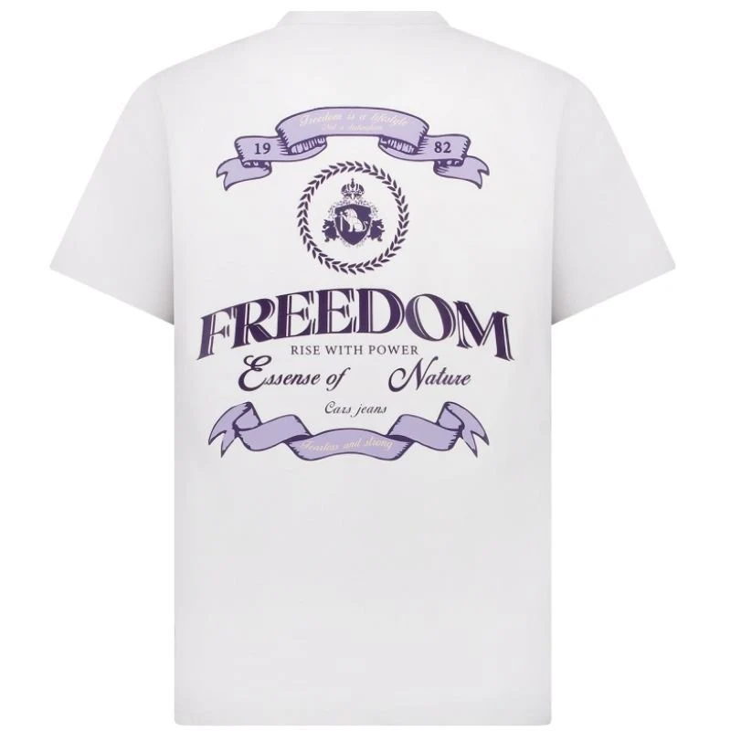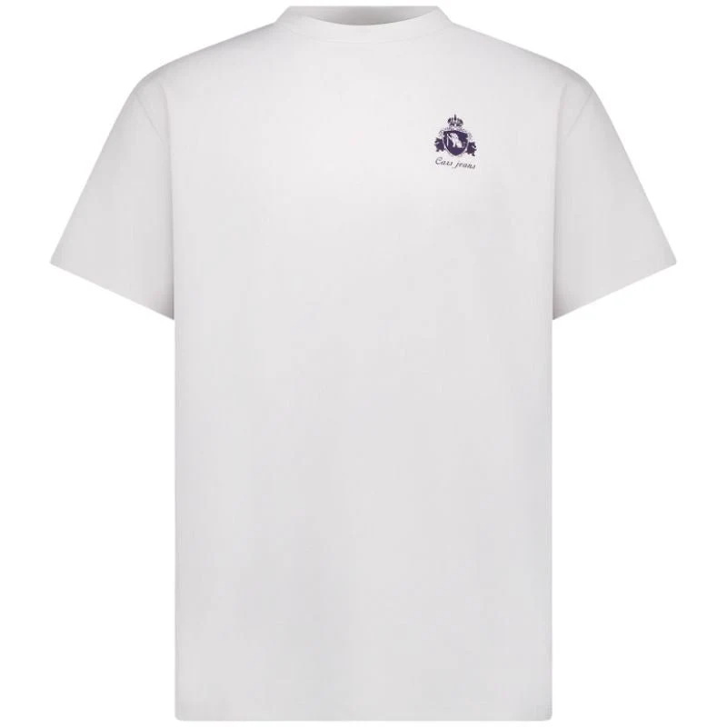 Wit ronde hals backprint t-shirt Nazuro van Cars voor heren. Dit opvallende t-shirt combineert een rustige voorkant met een grote, gedetailleerde backprint die direct in het oog springt. De frisse witte kleur vormt een sterke basis en laat de paarse print op de achterkant extra goed uitkomen voor een krachtige uitstraling.