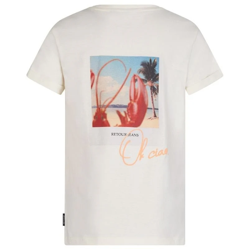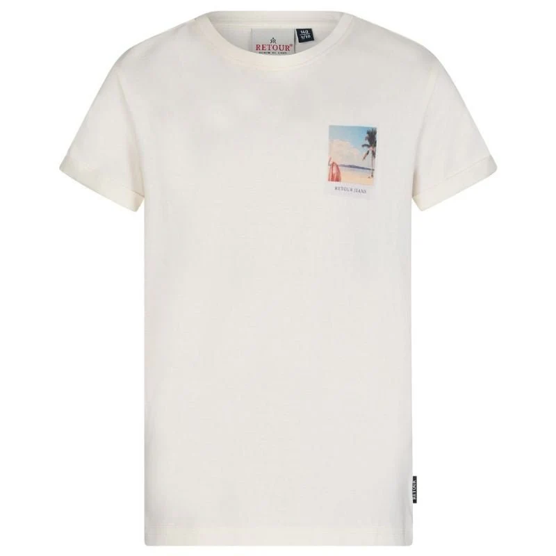 Wit t-shirt Damon van retour jeans voor jongens. Dit t-shirt is voorzien van een ronde hals en korte mouwen. Het t-shirt heeft een frisse witte kleur, met een opvallende gekleurde backprint en een subtiele borstprint. Gemaakt van 100% katoen. Biedt zowel stijl als comfort voor dagelijks gebruik. Perfect voor een casual look.