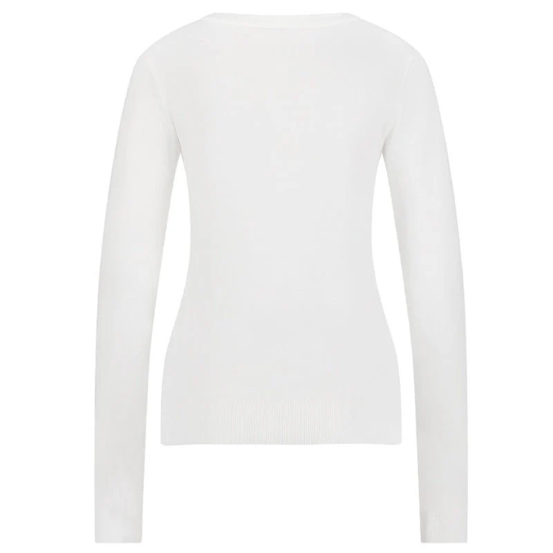 Witte basic knit pullover Lana van Studio Anneloes voor dames. Deze tijdloze pullover is gemaakt van een comfortabele travel knit die soepel draagt en mooi in vorm blijft. De trui komt uit de Essentials collectie van Studio Anneloes en vormt een fijne basis voor uiteenlopende outfits. Dankzij de regular fit valt de pullover natuurlijk om het lichaam, zonder te strak te zitten. De ronde halslijn is voorzien van subtiele ribboorden die zorgen voor een verzorgde afwerking. De lange mouwen maken de trui geschikt voor verschillende seizoenen en geven het ontwerp een klassieke uitstraling.