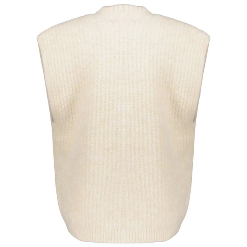 De warme stof bestaat uit een hoogwaardige mix van 49% gerecycled polyester, 21% polyester, 15% nylon, 8% acryl, 5% wol en 1% spandex. Deze combinatie maakt het gilet niet alleen zacht en comfortabel, maar ook duurzaam en vormvast. De lichte stretch zorgt ervoor dat het model soepel meebeweegt en perfect in model blijft, zelfs na veelvuldig dragen.