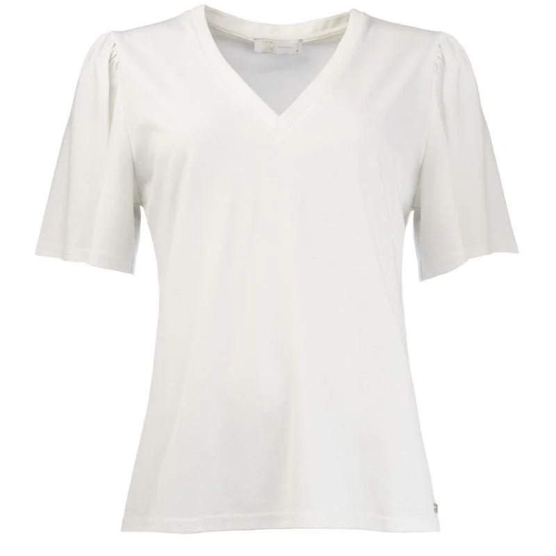 Witte top Relinde van TQ Amsterdam voor dames. Deze top is een stijlvolle en comfortabele keuze voor elke gelegenheid. Gemaakt van een zachte viscosemix, biedt deze top een perfecte pasvorm. De v-hals en korte mouwen geven een elegante uitstraling. Dit veelzijdige kledingstuk is eenvoudig te combineren en een must-have voor je garderobe. Verkrijgbaar in twee kleuren.