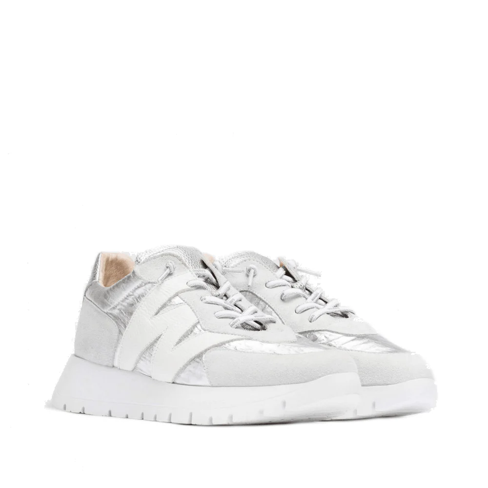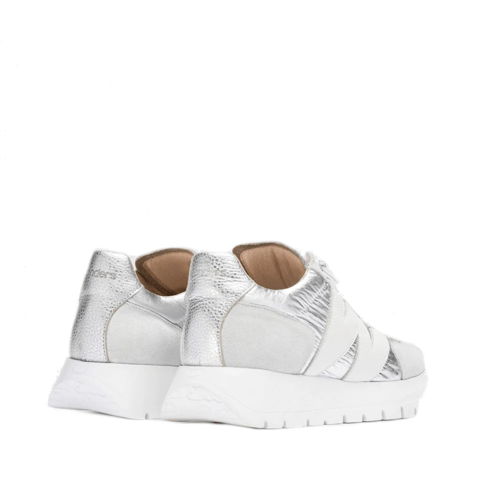 Ontdek de perfecte mix van stijl en comfort met de Wonders Veterschoenen 2464 in het wit. Deze sneakers zijn niet alleen een lust voor het oog dankzij de zilverkleurige suède combinatie met grijs suède, maar bieden ook ongeëvenaard comfort door de innovatieve WondersFly™-technologie. Het geprinte logodetail voegt een eigentijdse twist toe, terwijl de verstelbare veters zorgen voor een persoonlijke pasvorm. Klaar om te ervaren hoe het is om te vliegen met elke stap die je zet?