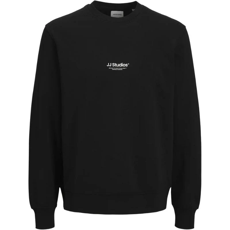 Zwart geprinte crew neck sweater Soho van Jack & Jones voor heren. Deze klassieke sweater is een comfortabele basic die niet mag ontbreken in de kledingkast van elke man. De trui is gemaakt van een zachte sweatstof met een licht geborstelde binnenkant die heerlijk aanvoelt en zorgt voor extra warmte op koelere dagen. Dankzij de mix van biologisch katoen en gerecycled polyester blijft het materiaal mooi in vorm en draagt het bij aan een duurzamere keuze.