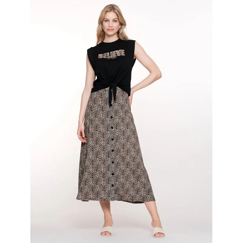 Zwart geprinte rok Leopard 56335 van Geisha voor dames. Deze stijlvolle rok met leopardprint is een echte eyecatcher. De soepele stof en elastische tailleband zorgen voor een comfortabele pasvorm en een mooie en fijne bewegingsruimte. Perfect voor een trendy look, of je hem nu combineert met een basic top of een blouse. Ideaal voor zowel casual als nettere momenten.