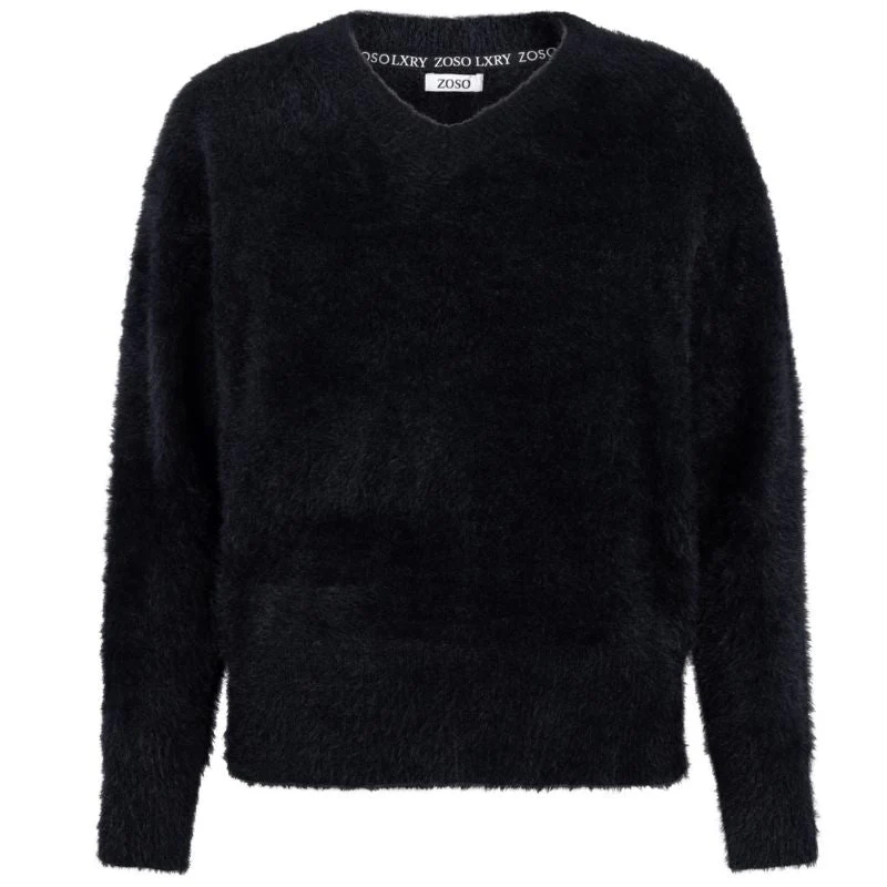 De zwarte fluffy v-hals sweater Kim van ZOSO is een essentieel kledingstuk voor elke vrouw die houdt van comfort met een chique twist. Perfect om eindeloos te combineren en altijd stijlvol voor de dag te komen.